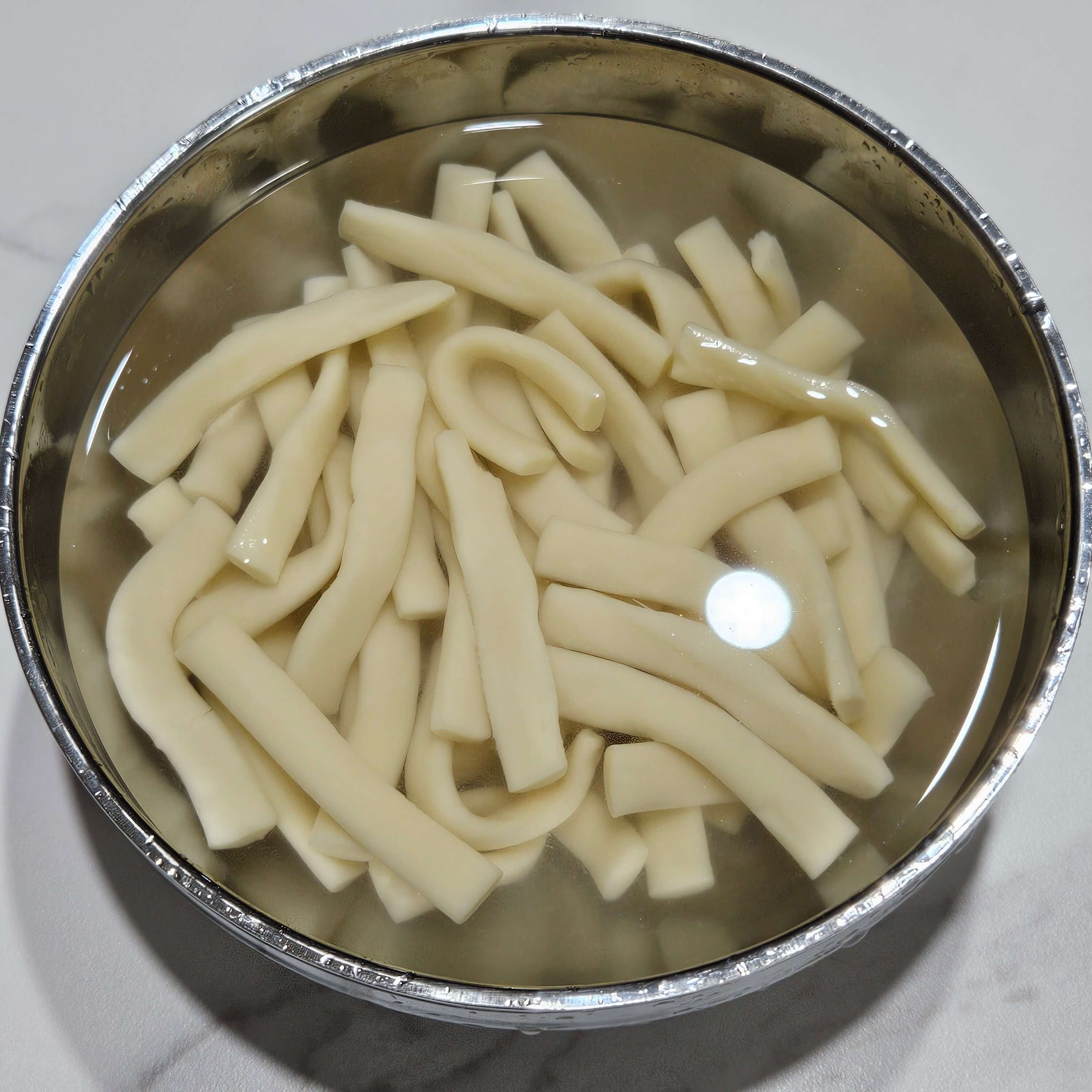 1. 떡을 개봉하여 찬물에 담그고 붙어 있는 떡을 분리한 후 건져냅니다.